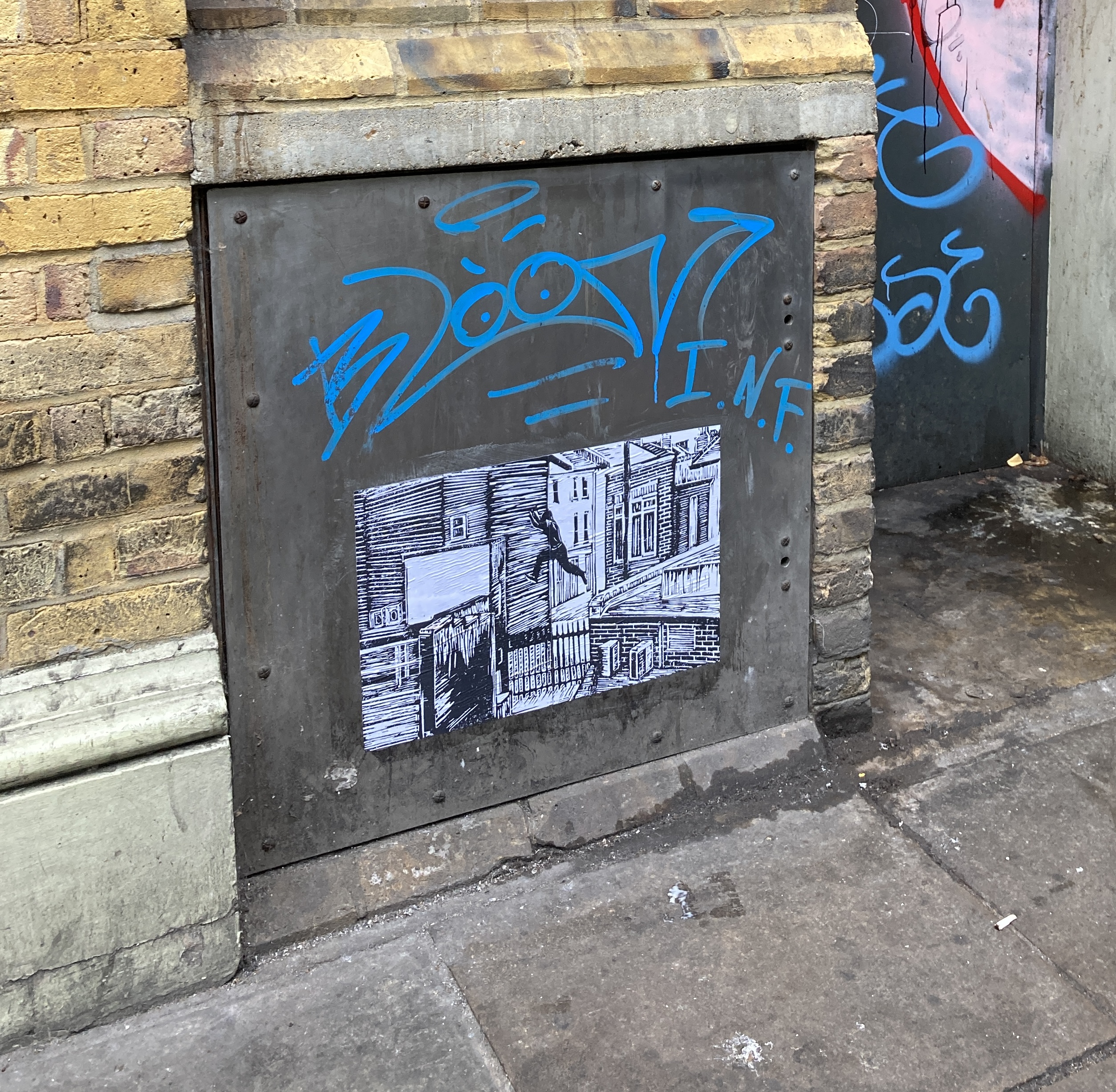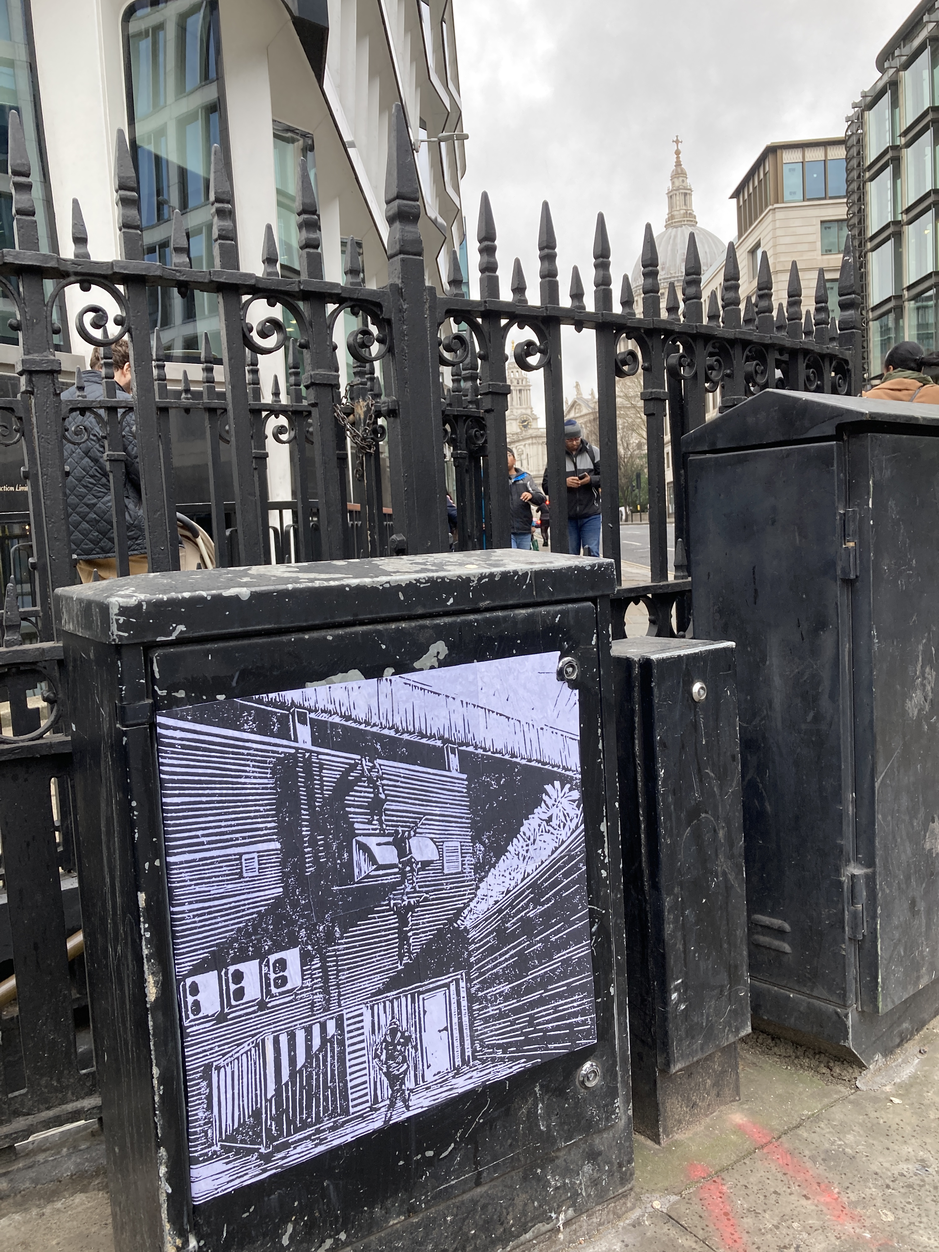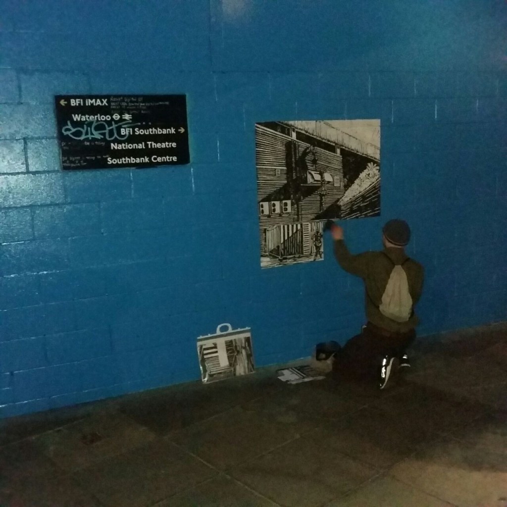 Putting my images up in public spaces felt like the thing to do. While walking around, I would frequently spot spaces on walls and other ‘street furniture’ that seemed to welcome the idea.