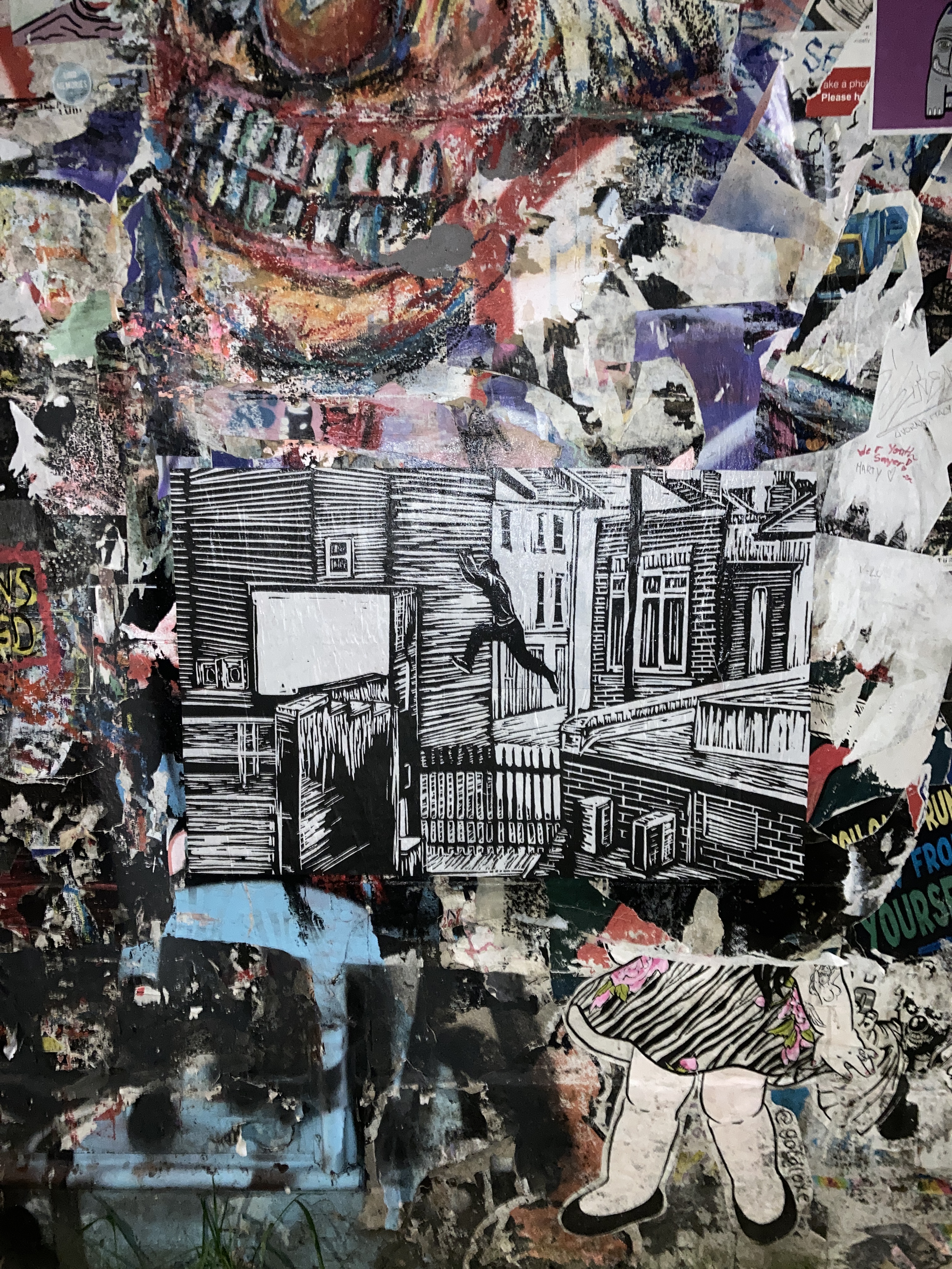 I relished the freedom of going out with a bucket of wheat-paste and a folder of prints, trying to fit my images into spots where they seem to live naturally.