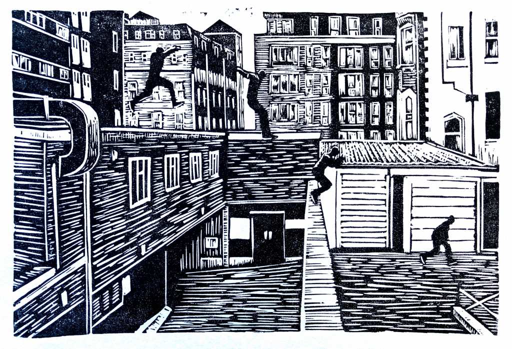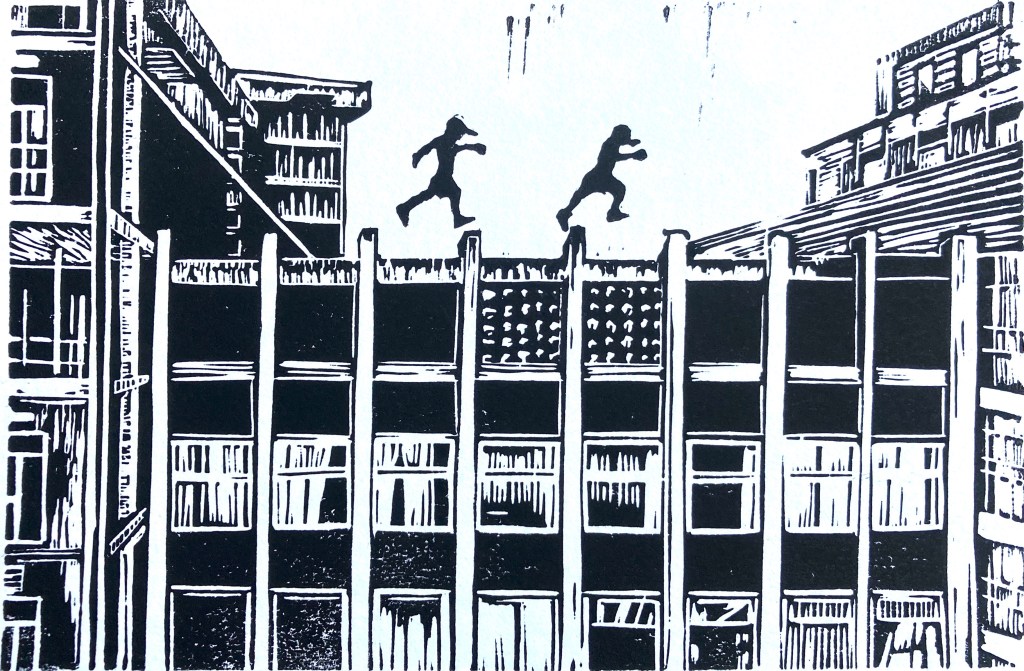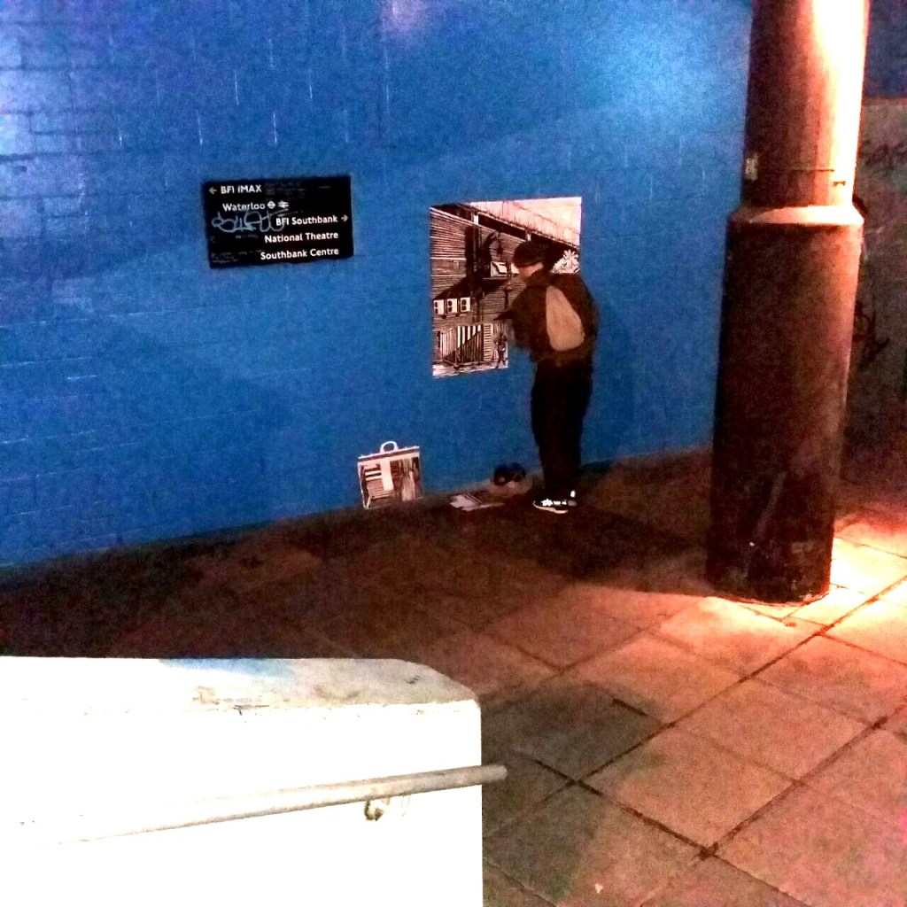 I have displayed enlarged prints of these pieces in the streets, using multiple sheets of paper in grids to form the image.